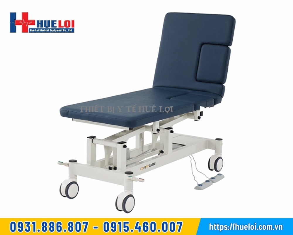 Bàn khám tim mạch điều chỉnh điện được trang bị hệ thống nâng – hạ chiều cao và điều chỉnh tựa lưng bằng điện, vận hành thông qua công tắc chân tiêu chuẩn. Việc sử dụng công tắc chân giúp bác sĩ và kỹ thuật viên: