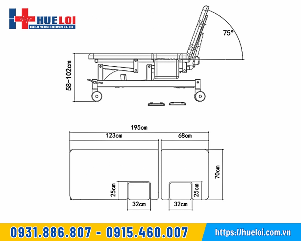 Tựa lưng có thể điều chỉnh linh hoạt với góc nâng lên đến 75°, đáp ứng nhiều tư thế khám khác nhau. Dải chiều cao rộng từ 58 – 102 cm giúp bàn phù hợp với đa dạng thể trạng bệnh nhân, đồng thời hỗ trợ tư thế làm việc ergonomics cho nhân viên y tế, giảm mỏi lưng và áp lực cơ thể khi làm việc lâu dài.